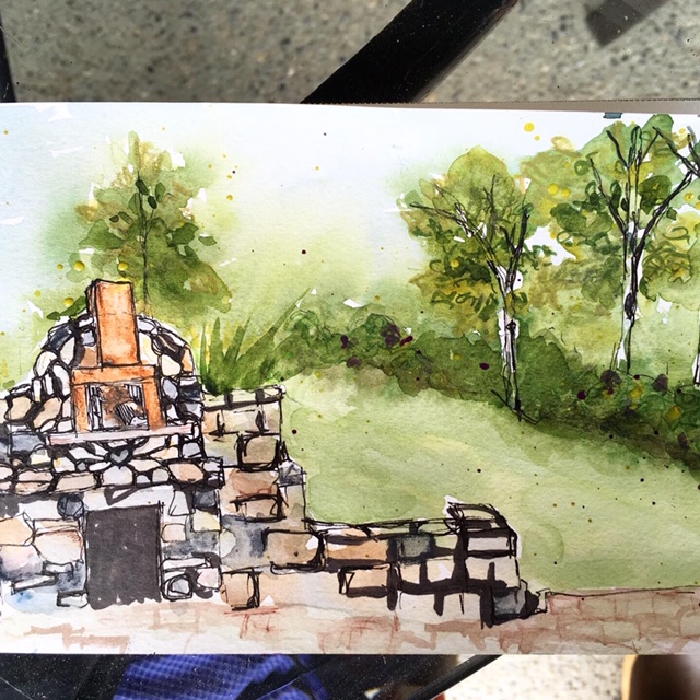 However, after lunch I switched to my ink and watercolour in my sketchbook, we were served wine and I relaxed and enjoyed myself a whole lot more.
